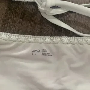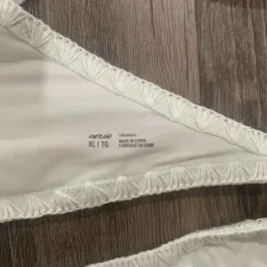 Aerie coral and white crochet swimsuit