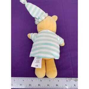 This Disney hoop is a 7-inch Winnie the Pooh Lovie featuring a green and white striped nightshirt and cap. The adorable bee with Pooh embroidery completes the charming design.