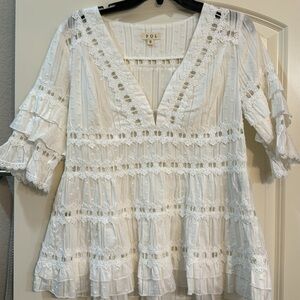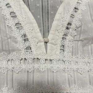 Never worn tags removed beautiful white eyelet top. V-neck with one button. Sleeves are amazing.