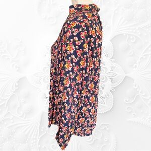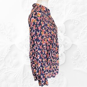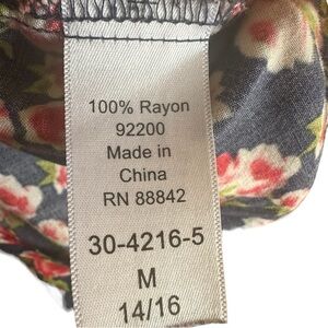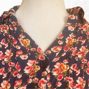 Beautiful Woman Within 100% rayon floral blouse. The garment is in great used condition, is so soft to the touch, and very breathable. Wonderful top. Has as pleat designs on the front. Will provide measurements upon request.