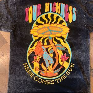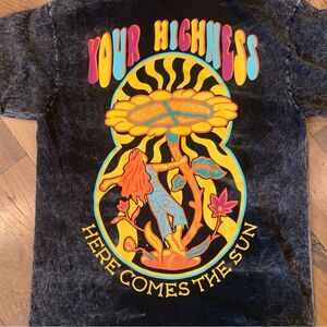 Here Comes the Sun Your Highness Black Gray Tie T-Shirt Size Medium