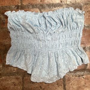 Light blue free people halter top with elastic and underwire, size Large