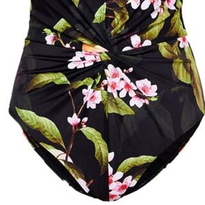 Swimsuit by Ted Baker, featuring Ted's 'Peach Blossom' print with a plunge neckline and twist detailing to the front.