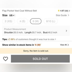 Comfortable vest coat, with front pockets with buttons, collar and openings on the sides, warm internal material It doesn't come with the belt, (original packaging) (see photos for more details)