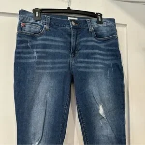 Size 29. Hudson women’s Natalie mid rise skinny jeans with distressing. Great condition!