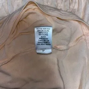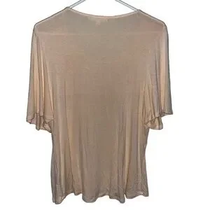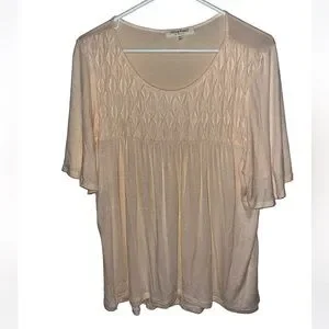 Peach top with short sleeves. Empire waist with gathering type design.