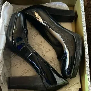 Like new condition. Slight wear. 4” heel. Small platform (1/2”) on sole. Man made material. Inserts included.
