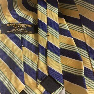 Brooks Brothers Makers Mens Repp Neck Tie Green Blue Yellow Printed Silk. USA