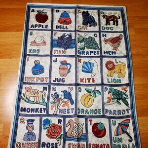 Folk Art Hand Made Alphabet Tapestry Nursery School Wall Hanging 29" X 47"