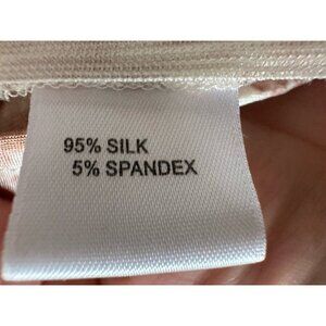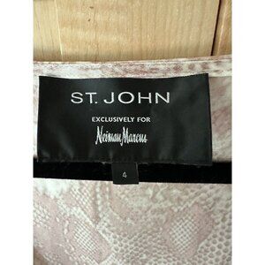 This St. John Basics tank top is a must-have for any fashion-forward woman. The light pastel pink and white snakeskin pattern creates a bold and eye-catching look, while the V-neckline and faux wrap design add a touch of elegance. The sleeveless top is perfect for any occasion, whether it's a party or a casual day out.