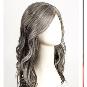 Sugar and Charcoal / salt and pepper Ready for It Synthetic Lace front hand tied wig. Brand New. Never worn. Tag is attached and the wig stand is compliments of me!! The Ready for It Gabor series has gentle waves that imitate naturally wavy hair. The extended lace front offers flexible styling.