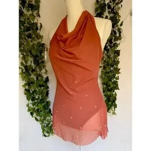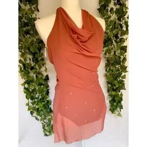 Balera Dance Orange Sheer Mini Dress with Underneath Leotard Women's SZ Small