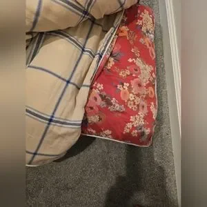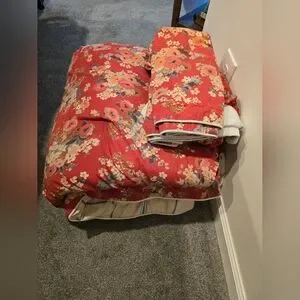 This is a lovely vintage Lauren Ralph Lauren queen comforter, queen bedskirt, and 2 standard size pillow shams. This set is vintage and pre-loved. The shams and bedskirt do not have any flaws, just normal wear and wash-wear. The comforter has flaws. I have added photos of the types of flaws throughout the comforter.
