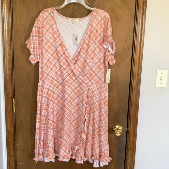 plaid print ruffle detail faux wrap dress w stretch 2X jrs