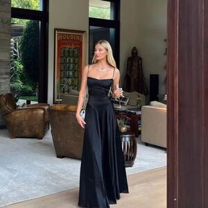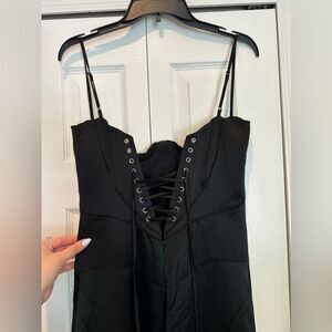 House of CB Anabella Dress—Long Black Formal Corset Tie Contemporary Chic