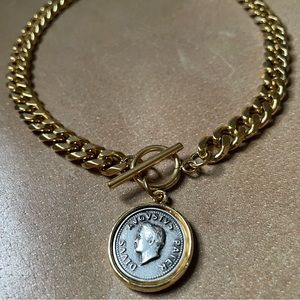 Gold silver plated Roman augustus coin gold plated curb chain toggle choker