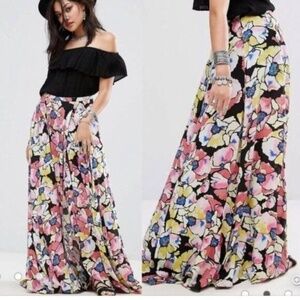 Free People Hot Tropics Floral High Slit Maxi Skirt in Multi Color Size 4