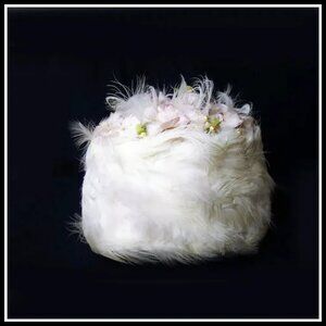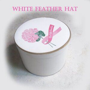 Vintage Hat + HATBOX Spring Toque White Feather Hat Pink Flowers 50s 1950s