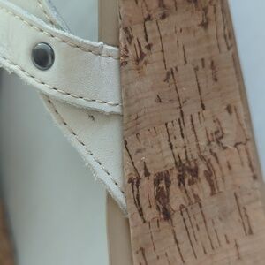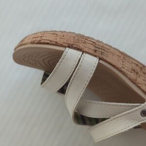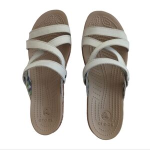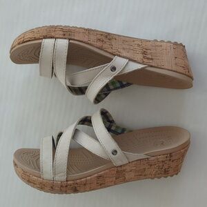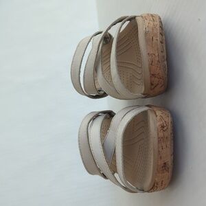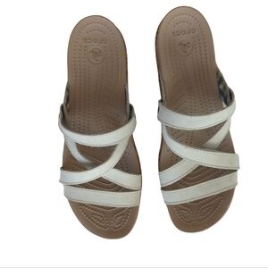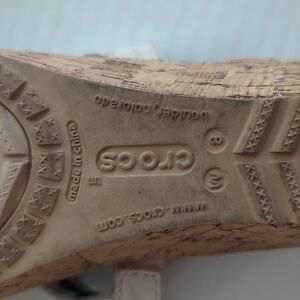 Crocs Open Toe Cork Wedge Strappy Slide Sandal 8 Creamy Beige Tan