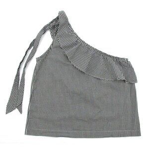 Vineyard Vines Blouse Womens 12 Plaid Stretch Seersucker Ruffle One Shoulder Tie