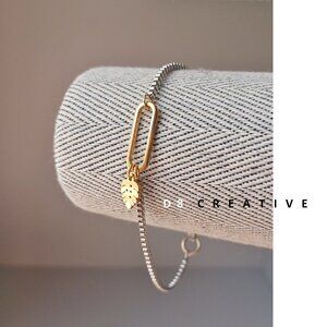 New men's Stainless Steel Silver box chain with paperclip link Bracelet