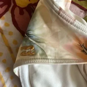 Gently used condition bikini top from billabong. Tag ripped out but took picture of the logo to confirm this is in fact a billabong bikini top. Since the tag ripped out I can’t remember what size it was I am assuming a large. For reference I am a 36D. No adjustable straps but the hook closure is adjustable and wired cups for support. It’s about 15” wide going across for reference.