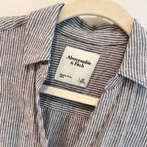 A&F linen blend dress, button up, toes at waist, pockets