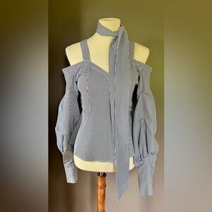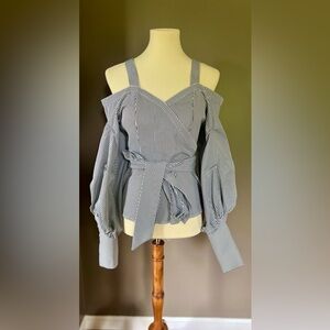 DIS MOI Blue & White Cotton Striped Shirt Size Small