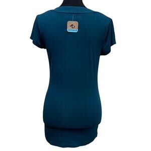 This ladies size medium tee is 95% rayon, 5% spandex, and in excellent condition! chest is 16" across, length is 25". So cute!