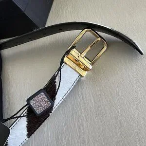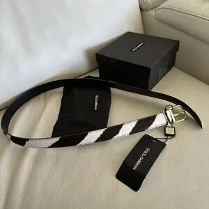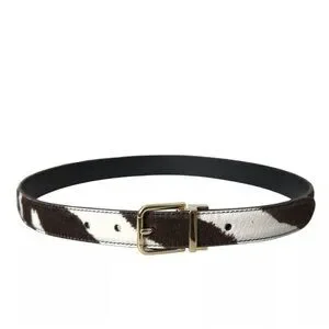 NEW Dolce & Gabbana Brown White Zebra Pony Hair Gold Buckle Women's Belt 90 Cm