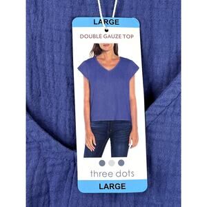 NWT Three Dots Double Gauze women's top in periwinkle, size L. 100% cotton top is light and airy, perfect for warm weather!
