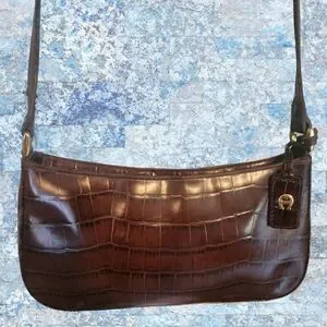Brown Croc-Embossed Leather Crossbody! Iconic 90s Crossbody Bag in EUC!!! ETIENNE AIGNER is German Lux Brand! 11"W x 6"H