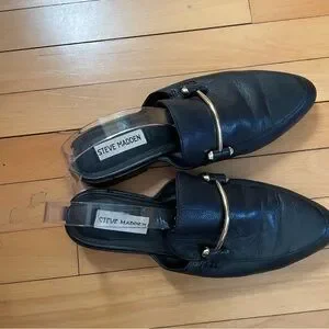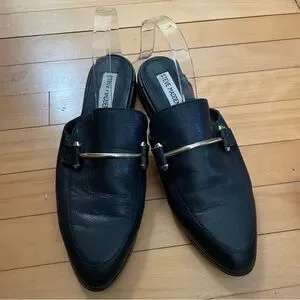 Steve Madden slip on mules leather upper name Laaura size 8. These are very comfortable and in excellent condition.