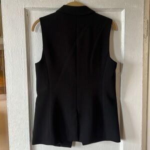 Jcrew sleeveless suit jacket/Vest. Lapel and front pockets. Inner button pocket. Size 4. 100% polyester. Front button closure. 25” from shoulder to hem. Single vent at back. Middle back seam.