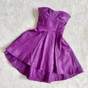 BEBE 💯% Genuine Leather Bustier Dress with Hi-Lo Hem, size XXS