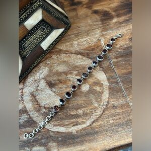 Genuine Garnet and Sterling Silver vintage chain bracelet
