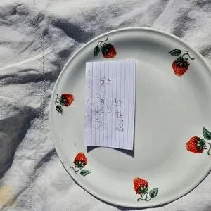 Description: All White, Strawberries On Rim, No Trim