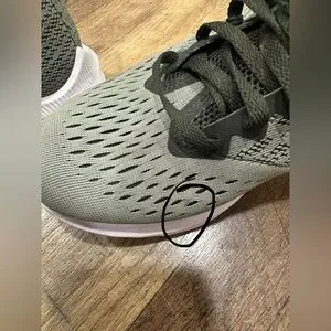 These have never been worn so they’re in great condition. They do have 2 very faint stains as shown in the photos and ripped laces on the left one from being moved around in storage. So one will require new laces. The stains will probably come out easily I just have not tried.