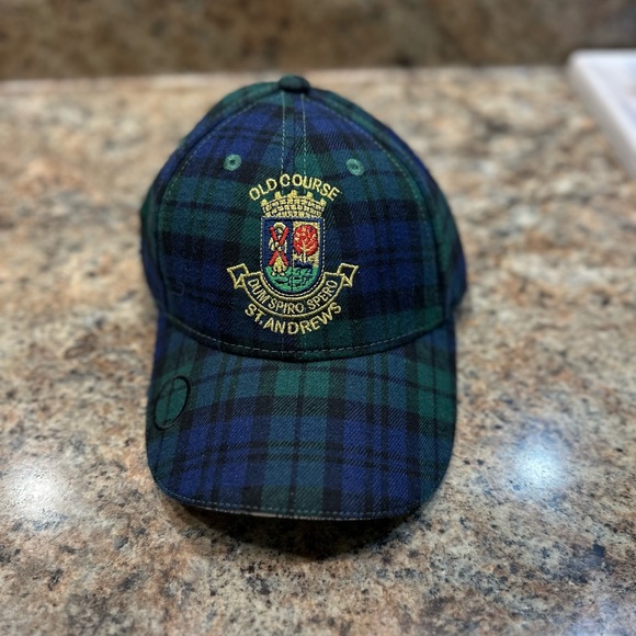 Plaid blue and green cap made exclusively for The Golf Shoppes of St. Andrew’s Golf Course.