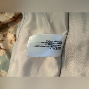 This was one of my favorite jackets! It has the prettiest pink tweed, mixed with shades of orange, cream and black metallic, with classy pewter-looking (plastic) buttons. Unfortunately, it’s no longer my size. This was only worn once or twice and it’s been safely stored for a few years now. It’s in like new condition.