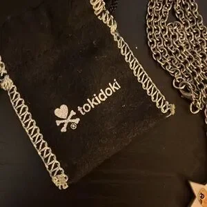 Features large Hello Kitty charm with Tokidoki heart & crossbones on her ear, as well as smaller Adios and Peach Star charms.