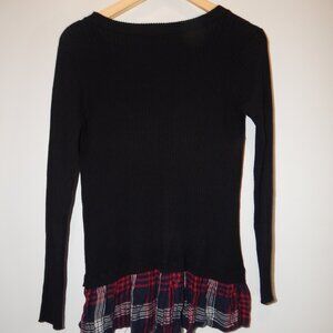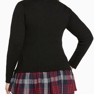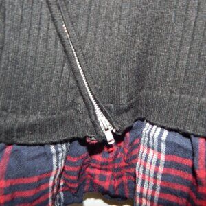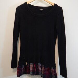 Torrid Ribbed Pullover Sweater black with plaid bottom ruffle and side zipper detail, lightly used in great condition size 0 (L 12)