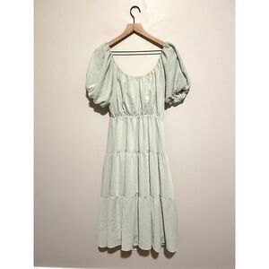 ASTR The Label Smocked Tiered Maxi Dress Sage Size Medium