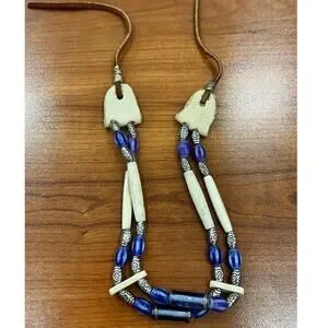 NWOT Vintage Native American Bone 2 Rows Leather Choker - Never Used