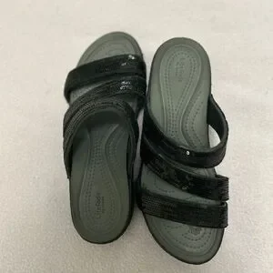 Lite Ride by Crocs Black Wedge Heel Sequin Straps Sz: 7