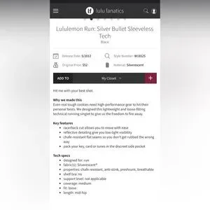 Lululemon Run: Silver Bullet Sleeveless Tech Tank