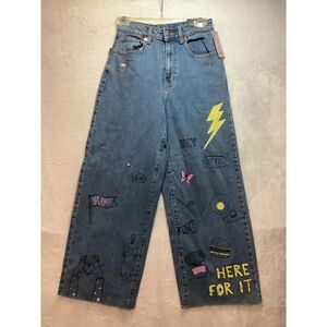 Wild Fable Womens ankle jeans size 00/24 with wide leg graphic design streetwear