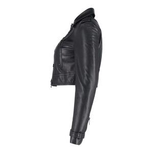 This leather jacket is a piece you will want to keep even if you have worn it countless times. Designed by Burberry, the creation is an example of quality and classic appeal. The black, cropped jacket is tailored with zippers, long sleeves, and button fastenings.