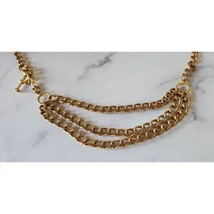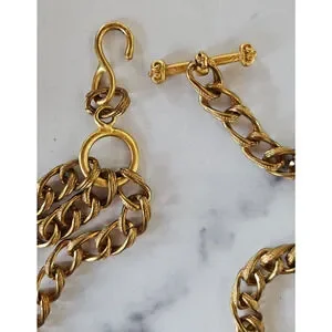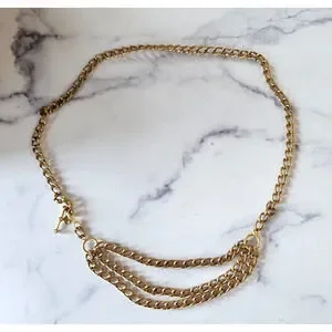 Vintage 80s Womens Chain Link Waist Belt Gold Tone Layered Adjustable Boho Swag