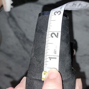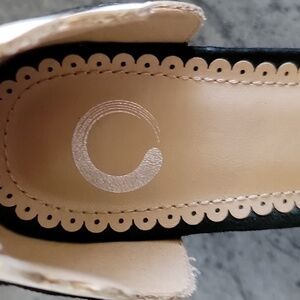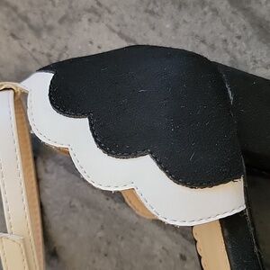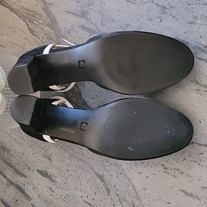 these pumps have ankle straps 3" heel approximately made of Faux suede with cute scallop design detail they are gently used with minor scuffs and scrape on inner heels see pics #12 &14 other than that really cute pumps and soft padded soles